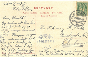 Jeg haaber at Du har en rar Juleferie, og gør rigtig mange Ture med Fader. Heroppe er ganske vidunderligt kønt og vi gaar hver Dag de dejligste Ture i dyb Sne. I Eftermiddag har jeg prøvet paa at køre paa Kælken; men Føret var ikke godt, da Sne var temmelig løs.