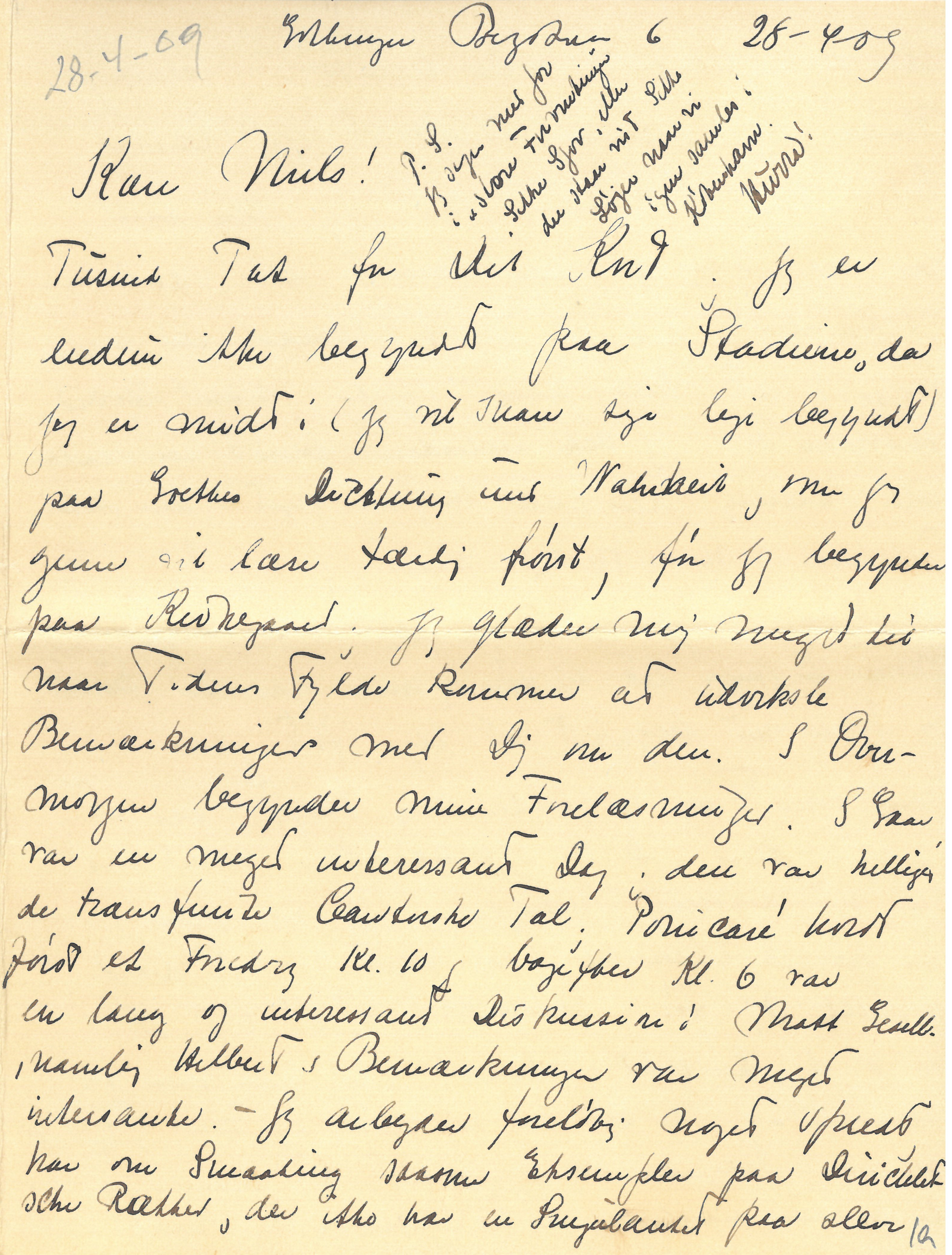 Jeg var forleden hos Prof Verworn med et meget blandet Selskab (1 Tysker