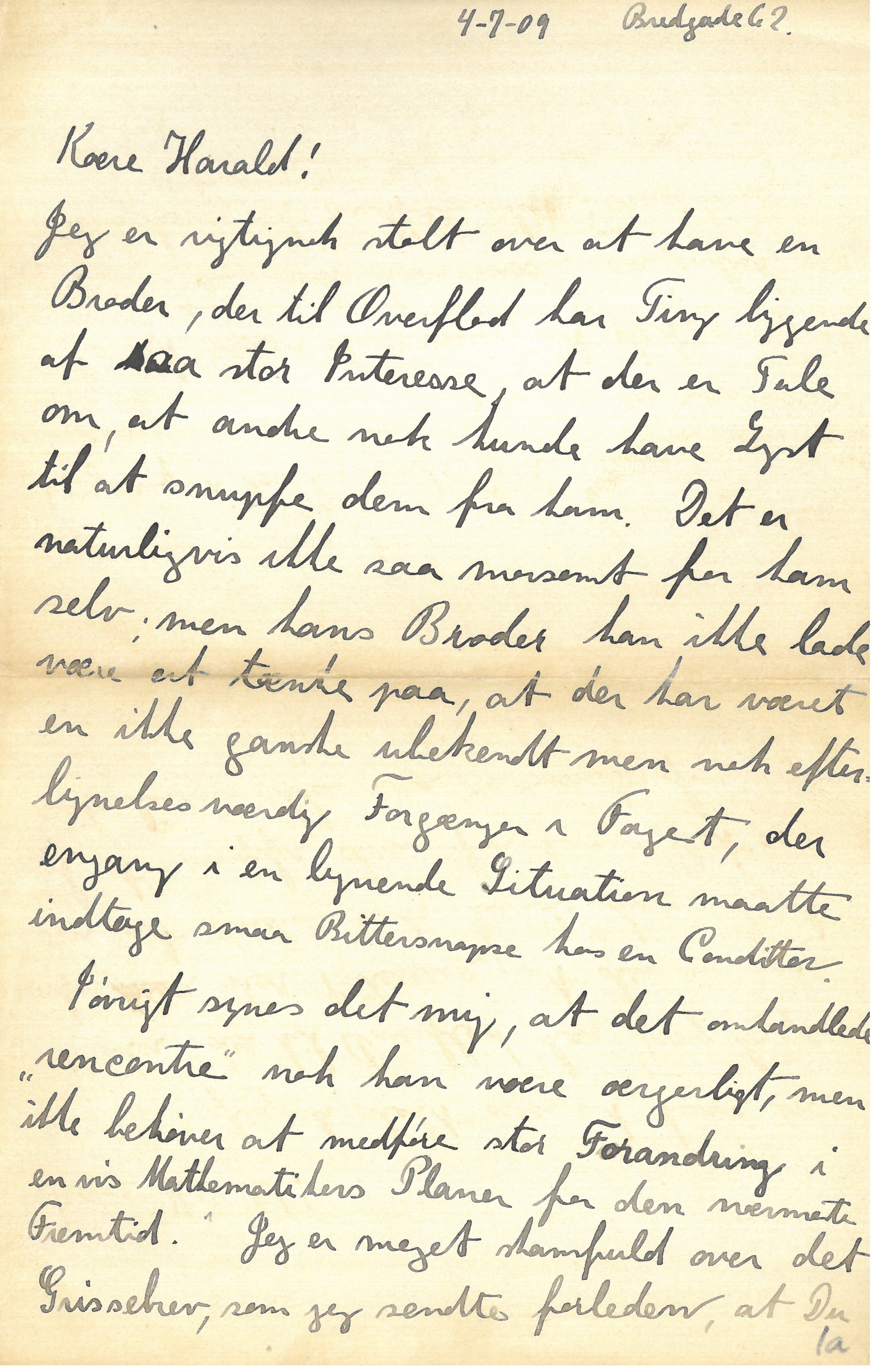 A København, Niels Bohr Arkivet, Harald Bohr Correspondence, HBC-BOHR-090704t. Brev skrevet egenhændigt af Niels Bohr