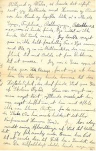 Jeg var i Gaar oppe at hilse paa Hr. Krarup, for at sige at hverken Du eller jeg kunde komme til den Højtidelighed, der skal finde Sted paa Grund af Skolens Ophør. Han var meget rar; men noget trist, og jeg kunde mærke, at han var noget skuffet over, at han mod Aftale ikke var bleven Bestyrer for de sammensmeltede Skoler (Du kan maaske huske, at det blev Konferensraad Hansens Søn). Jeg har idag sendt mine Afhandlinger af Sted til Udlandet, jeg fik nemlig under Examen kun Tid til at sende den til Folk her i Landet, dersom Du tilfældigt skulde kende nogen, som |det kunde more at faa den, kan Du skrive det til mig, da jeg paa Grund af “Selskabets” Flothed har over 20 tilbage.