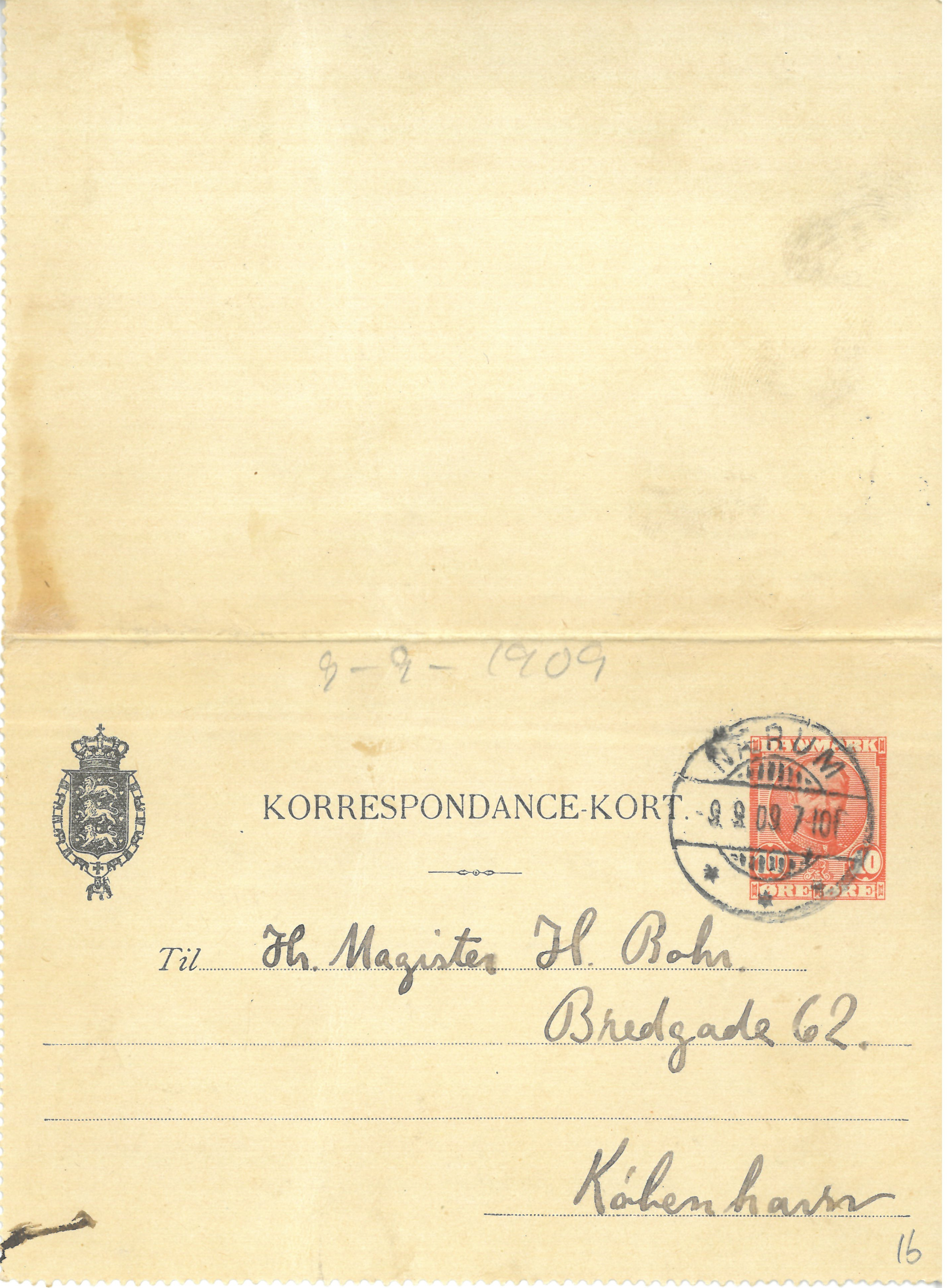 Ved Din Opringning (Tak!), har Du jo gjort Afsendelsen af dette dengang næsten færdigskrevne Kort noget unødvendig, men jeg sender det dog med en Hilsen og Haab om at Du og Mor morer jer, og at Mof synes bedre om I.P.