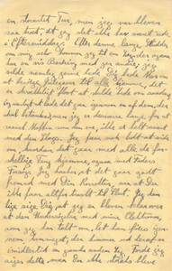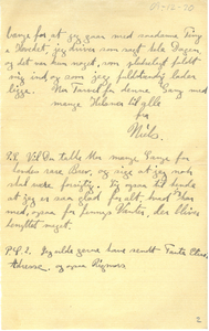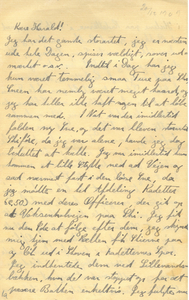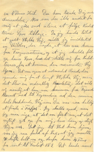 P.S. Vil Du takke Mor mange Gange for hendes rare Brev, og sige at jeg nok skal være forsigtig. Sig ogsaa til hende at jeg er saa glad for alt, hvad jeg har med, ogsaa for Jennys Vanter, der bliver benyttet meget.