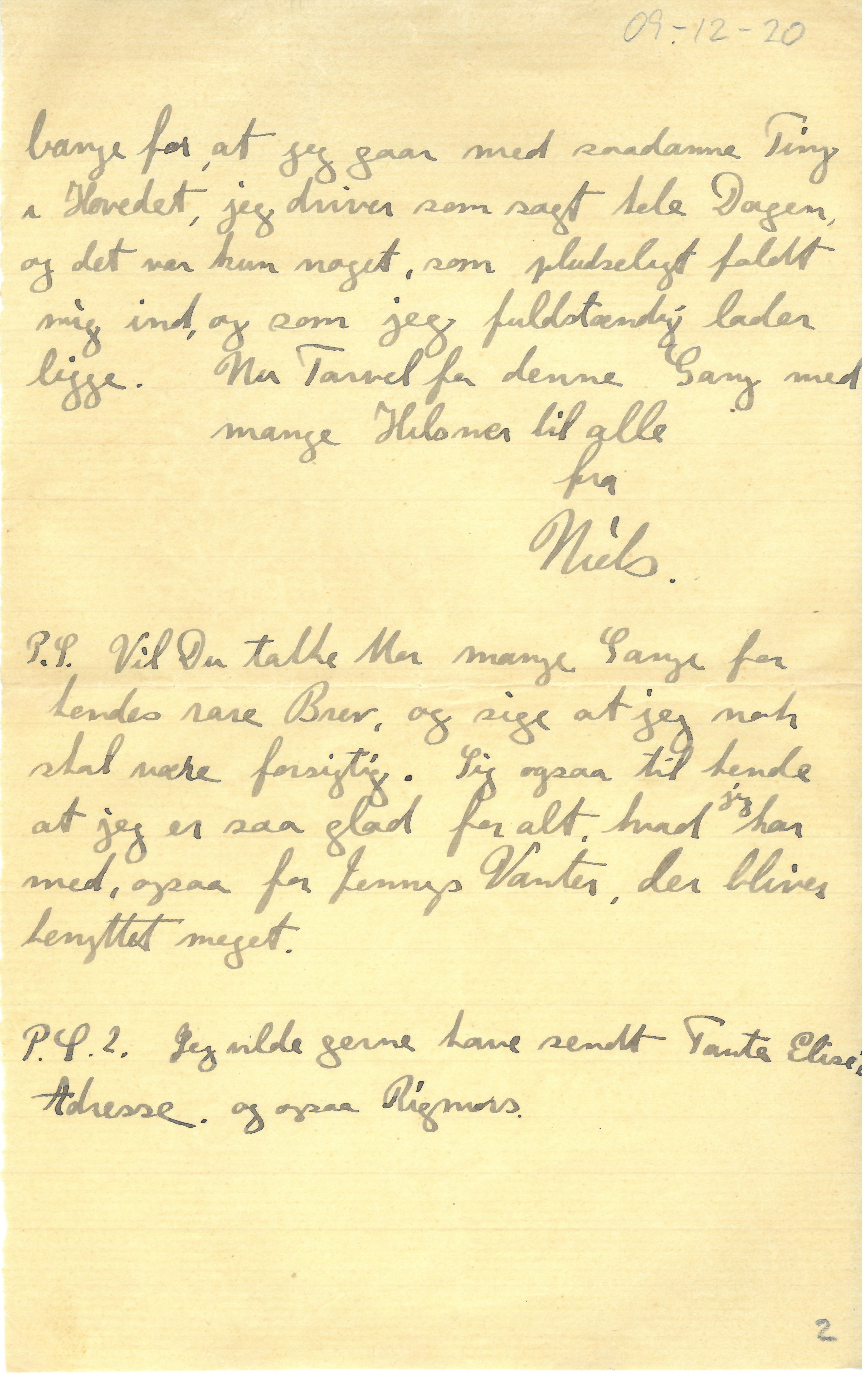 P.S.2. Jeg vilde gerne have sendt Tante Elise’s Adresse, og ogsaa Rigmors.