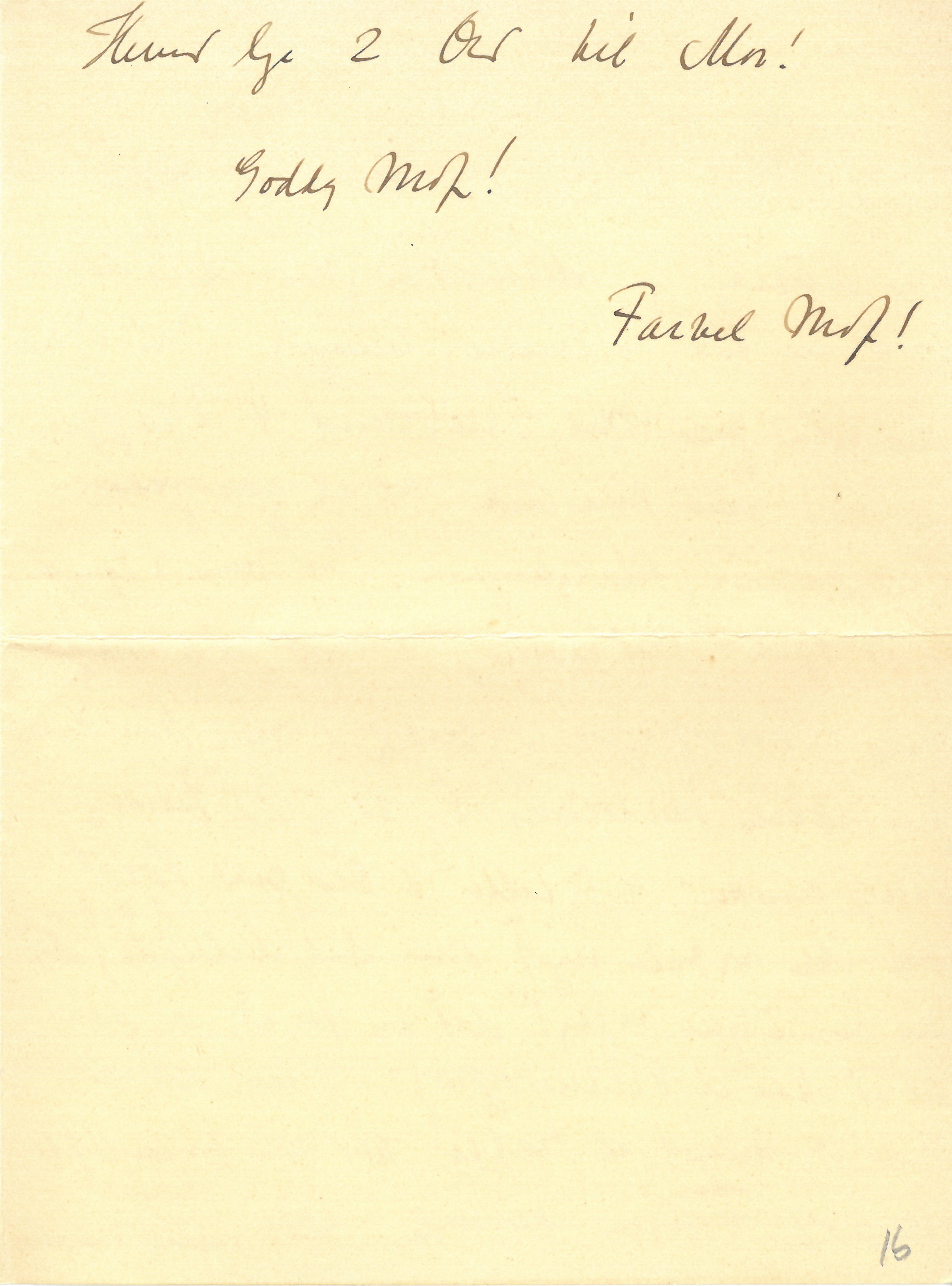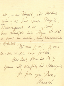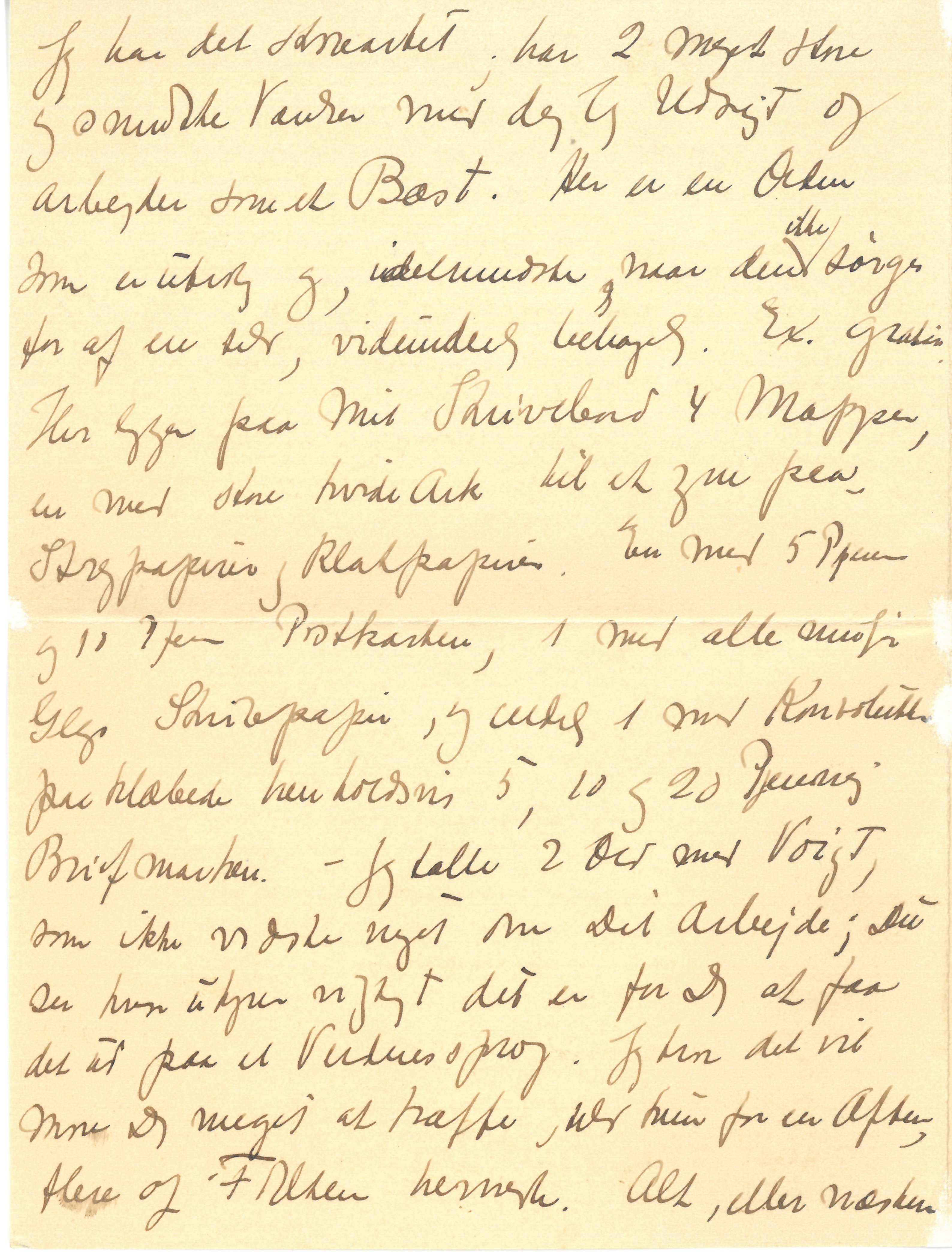 Kun i Hast et lille Brev før Middag Kl. 2. Du kan tro jeg glæder mig til Turen med Dig; jeg tror vi faar det mere end rart sammen. Hvordan gaar det med Dine forskellige Sager, hvis Du ikke allerede har sat Tandlægen Stolen for Døren, bedes Du gøre det snarest; bed Mor skrive til mig om Dig; Du har siet saa meget fra, at jeg helst ikke vil have Brev direkte fra Dig selv.