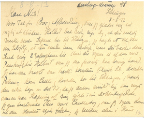 A København, Niels Bohr Arkivet, Harald Bohr Correspondence, HBC-BOHR-130808f. Kort skrevet egenhændigt af Harald Bohr. På konvolutten: Hr. Dr. phil. N. Bohr,Esbjerg,Poste restante, Dänemark