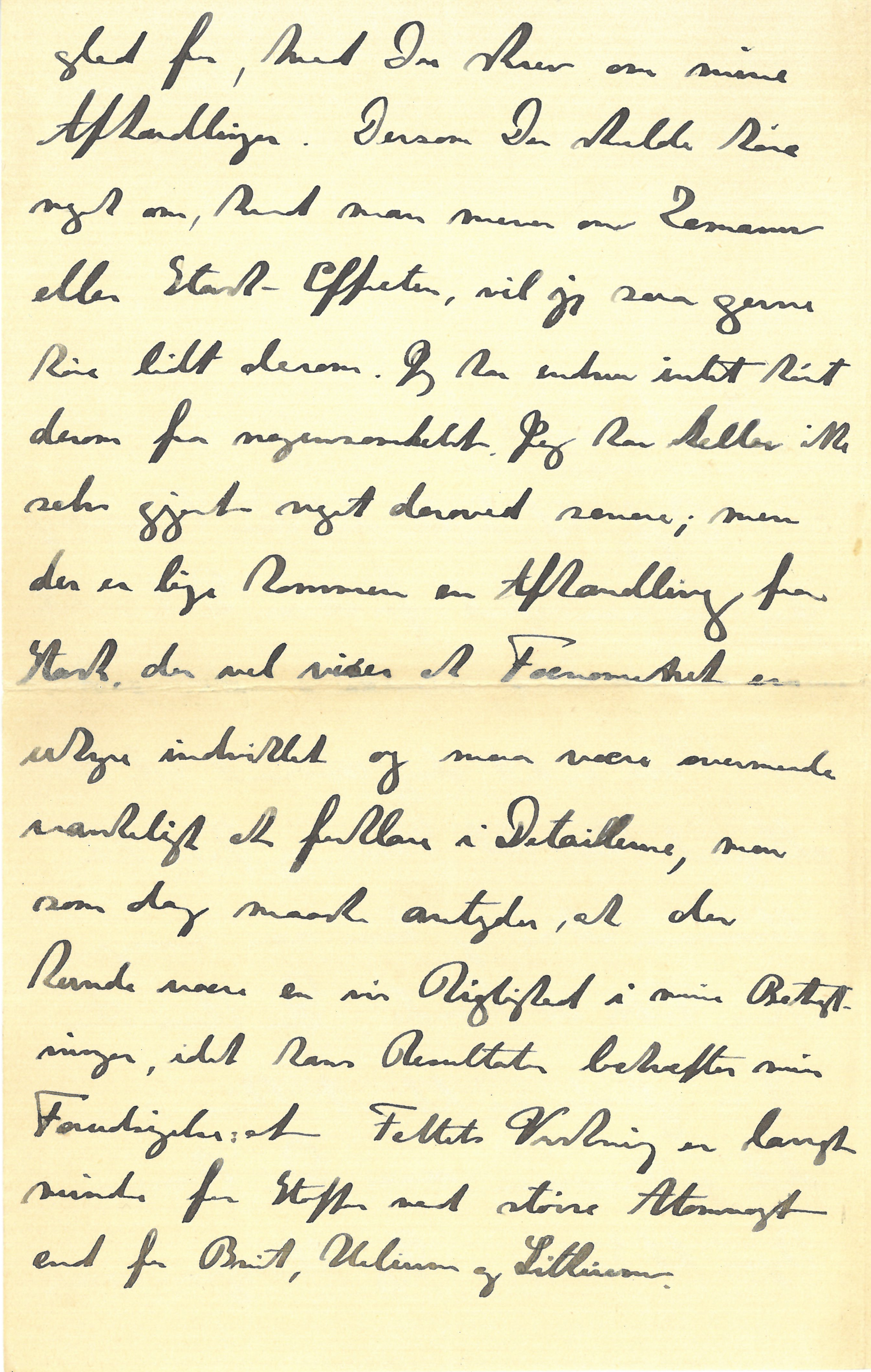 Dette skulde jo være et Fødselsdagsbrev, men er alligevel som sædvanlig kommen til at handle om mine egne dumme Sager, men jeg vilde saa gerne fortælle Dig om hvordan det stod, og det vil maaske ogsaa have Indflydelse paa Dine Planer, Aa jeg glæder mig saa meget til rigtig at høre derom naar Du kommer hjem.