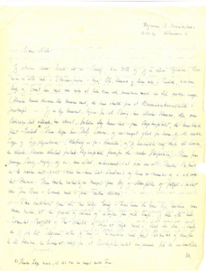 Ja, det bliver desværre ikke noget rigtigt Brev, men kun disse Linier, hvis egentlige Indhold blot skulde være at fortælle lidt om Moster Hanne, og at sende Dig og Margrethe saa mange kærlige Hilsner og sige, hvormeget vi herhjemme i Tankerne er hos Jer, og saa tillige bede Dig hilse alle fælles Venner hjerteligt fra mig.