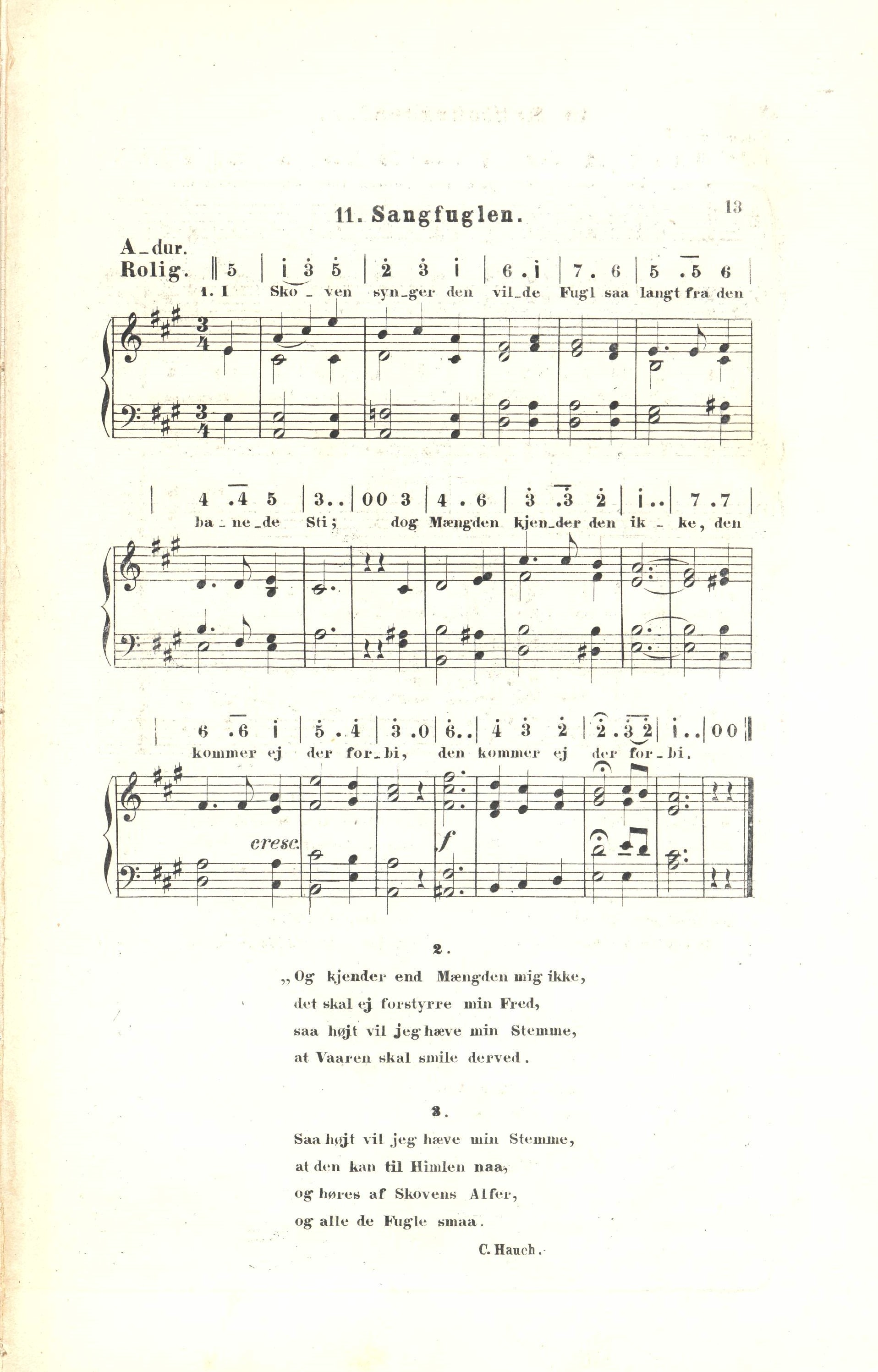 Udgaven af Sangfuglen indeholder to tekstversioner (A og B), som begge udkom i Hauchs levetid. De fire musikværker til digtet er betegnet C til F.