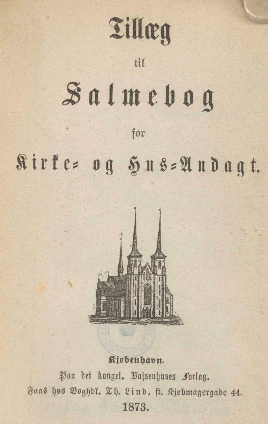Titelbladet til 1873-tillægget, som er den første officielle salmebog, hvori Mesteren kommer blev optaget
