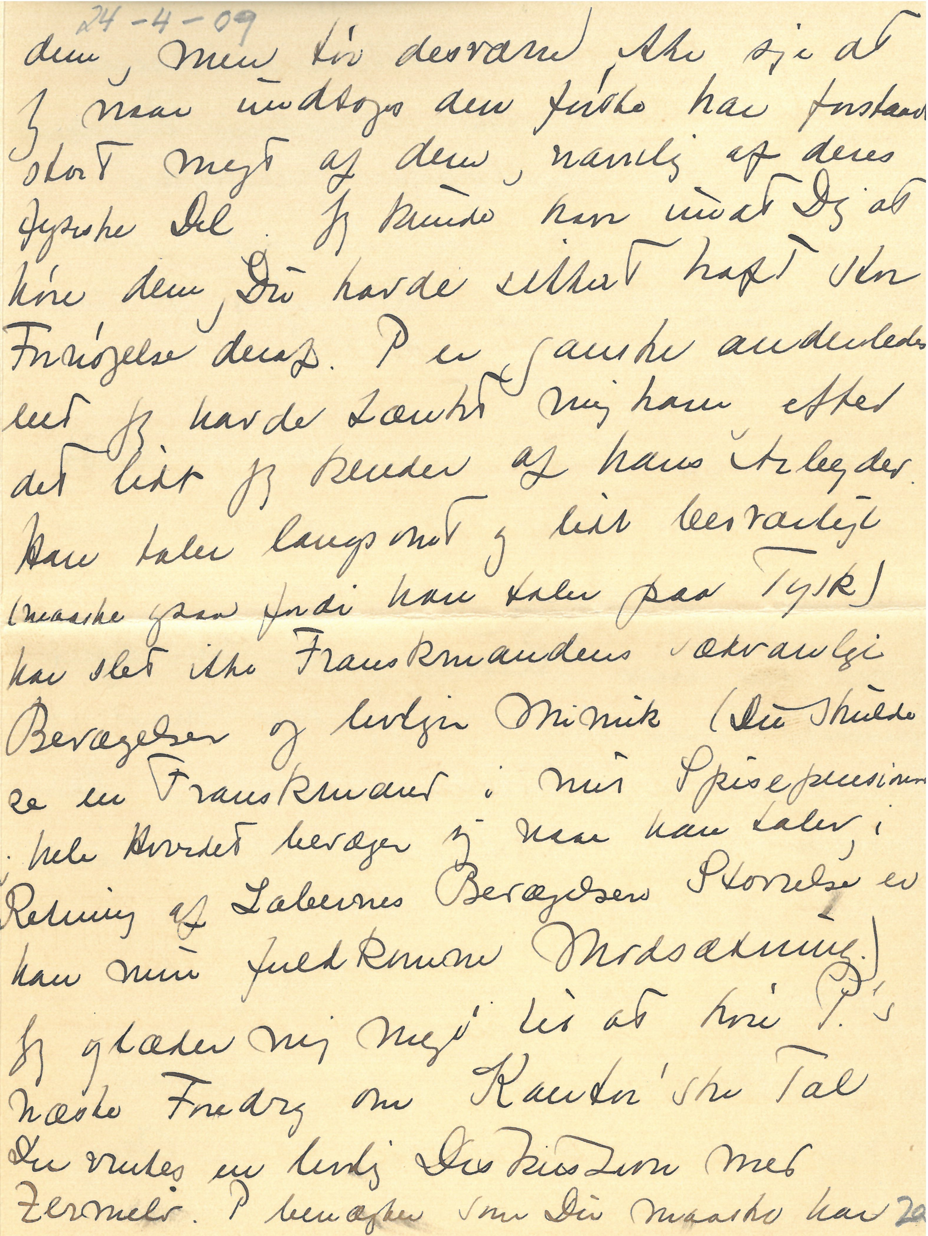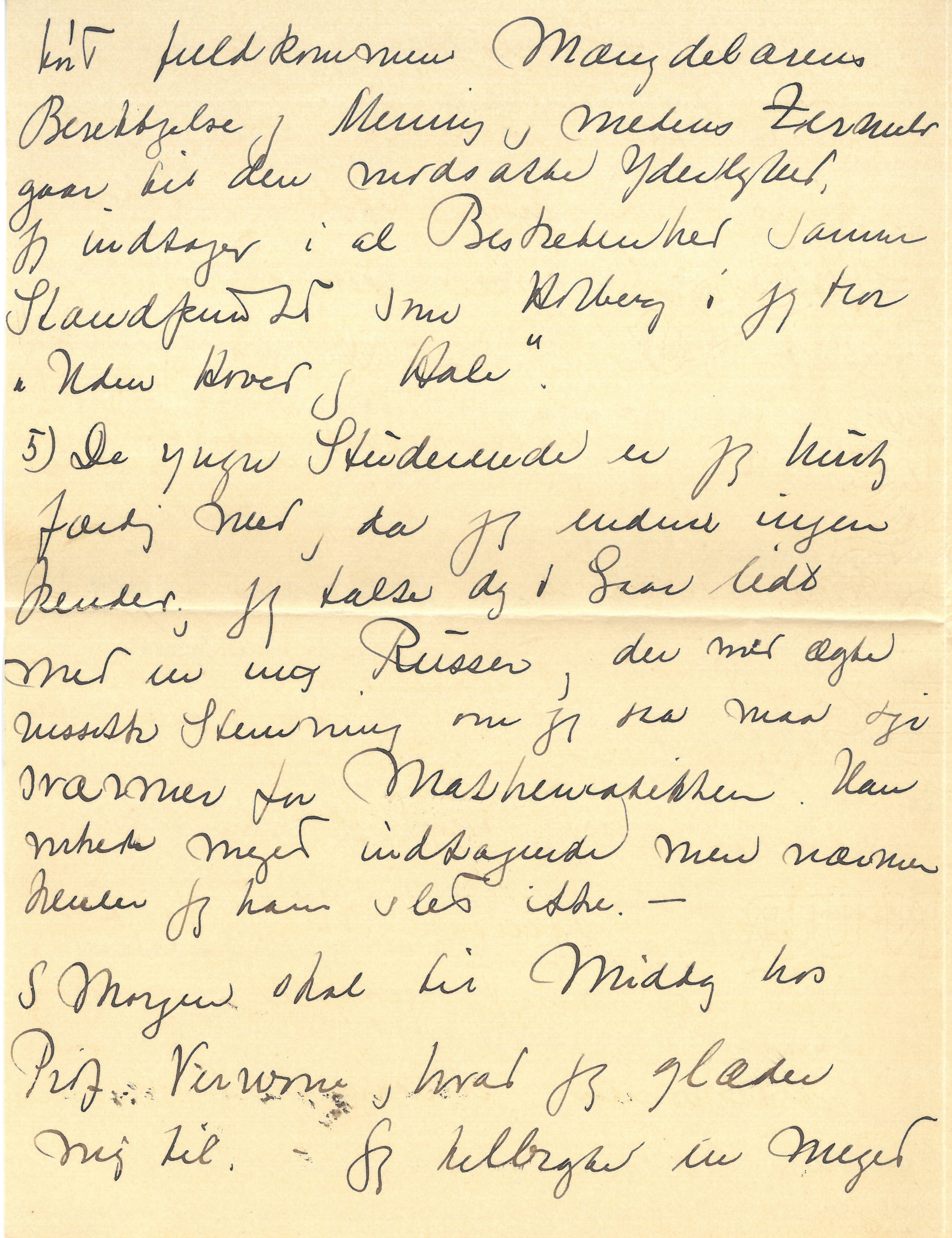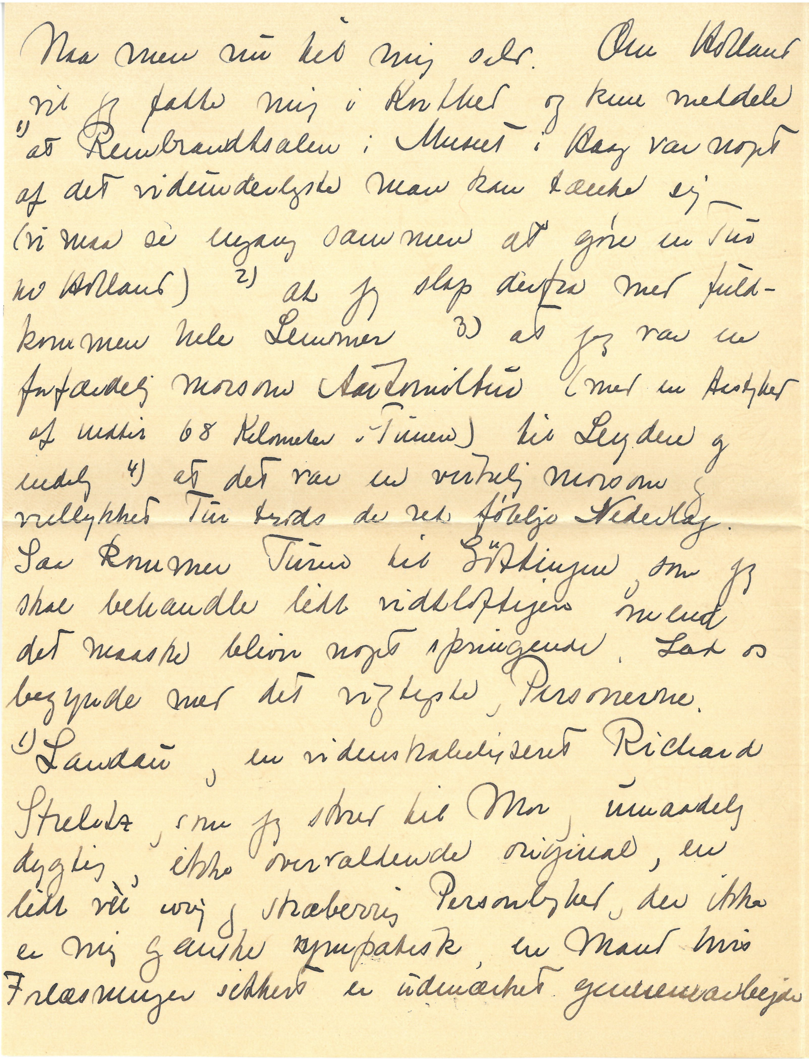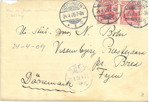 |I am very pleased with the boarding house and dining area. It is very beautiful district here, where spring is bursting forth. I am staying in a beautiful avenue on the outskirts of the city (the city, by the way, is not very large, similar to Aarhus). I have 2 nice rooms with large windows facing the street. I will be able to give you a great deal of more or less useful advice when I finally get home and you will be able to avoid a lot of silly mistakes that I have made in front of the family due to my ignorance of German student life. Now goodbye for today. I have had hardly anything to tell but I shall write soon in more detail and hopefully with more content. At the moment, I am reading Wilhelm Meister who is the wonderful everyman and rich. Be well little Nebuve and give many regards to the Møllgaard family.