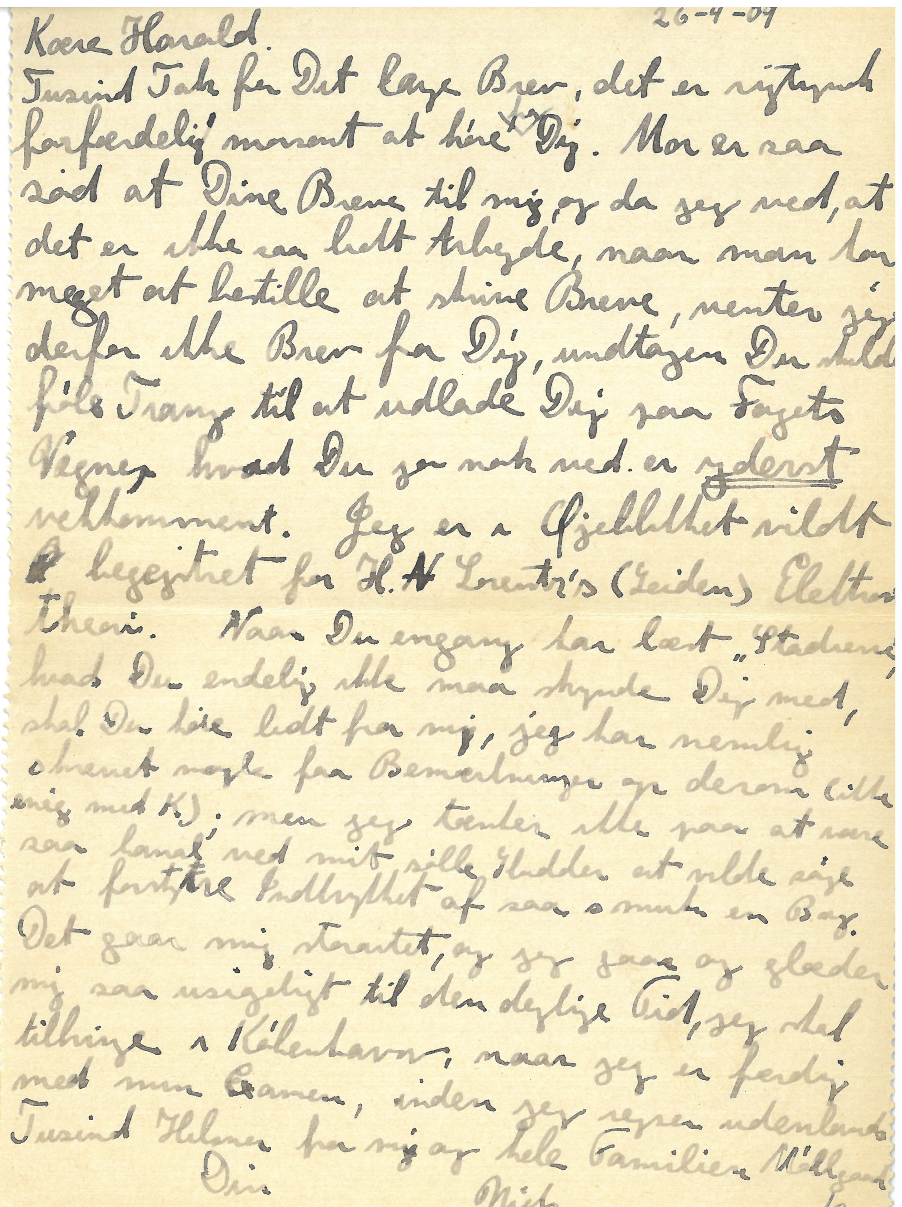 A thousand thanks for your long letter, it really is terribly pleasing to hear from you. Ma has been so sweet as to all your letters to me and as I know that it’s no mean feat, when you’re so busy, to write letters I therefore have not been expecting letters from you, unless you felt the need to discharge in your professional capacity, which as you know you are always very welcome to. At the moment I am very taken with H.A. Lorentz’s (Leiden) theory of electrons. When you’re finished with “Stages” and you must not hurry yourself, you will hear from me, for I have written up some comments on it (I disagree with K); but I wouldn’t think of being so banal as to let my poor nonsense sully your impression of so fine a book.