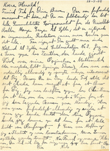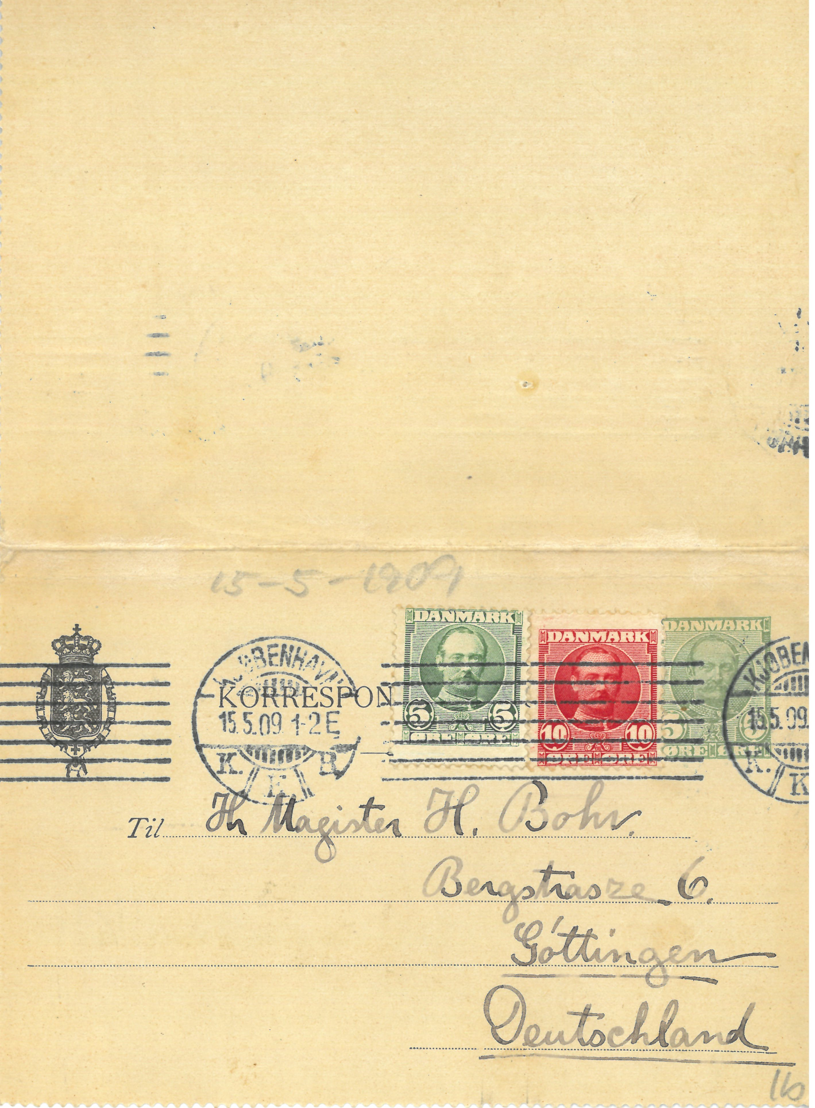 Many thanks for your letters. It was terribly nice to hear that you have completely solved the summability question for Dirichlet series. Many congratulations, it’s a very impressive feat when one thinks of the whole thing. Pa asked if you would congratulate Nørlund on gold medal no. 2. I was up in front of Zeuthen, yesterday who had made trouble concerning my submissions in mathematics (there was a lack in equation theory) he was extremely pleasant and intensely inquired about you. If you have time someday, it would seemingly please him greatly to receive a letter from you. Afterwards, I was at Christiansen's to hear whether there would be any problem with beginning my exam on Monday. He was terribly lovely and said that when I had picked up the big assignment I could come to him to talk a little about the scope. Yesterday Moffen and I were at the theatre and saw La Dame aux Camélias a magnificent performance by Anna Larsen Now goodbye and lots of love, you will hear from me when I get the assignment.