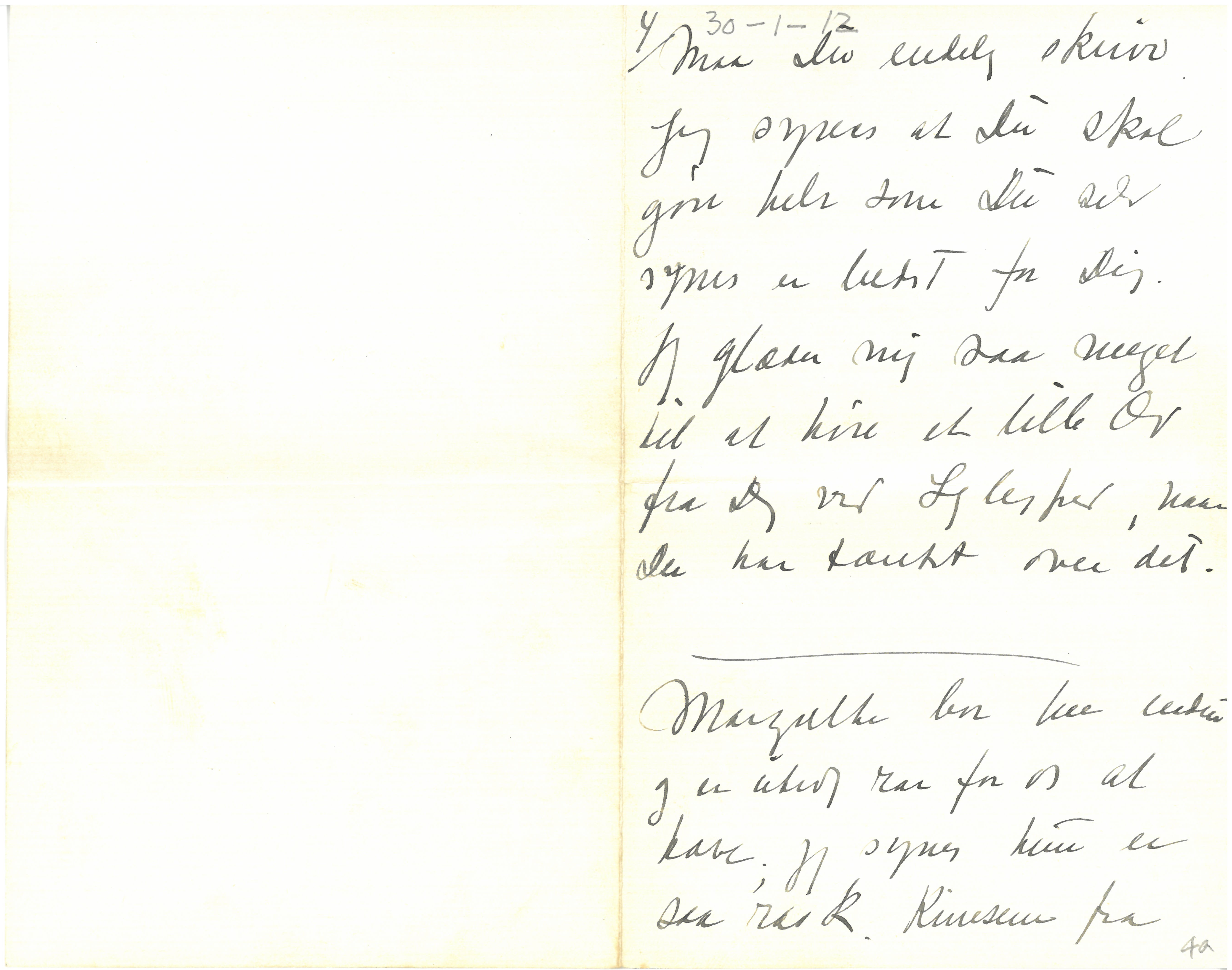 Jeg glæder mig saa meget til at høre et lille Ord fra Dig ved Lejlighed, naar Du har