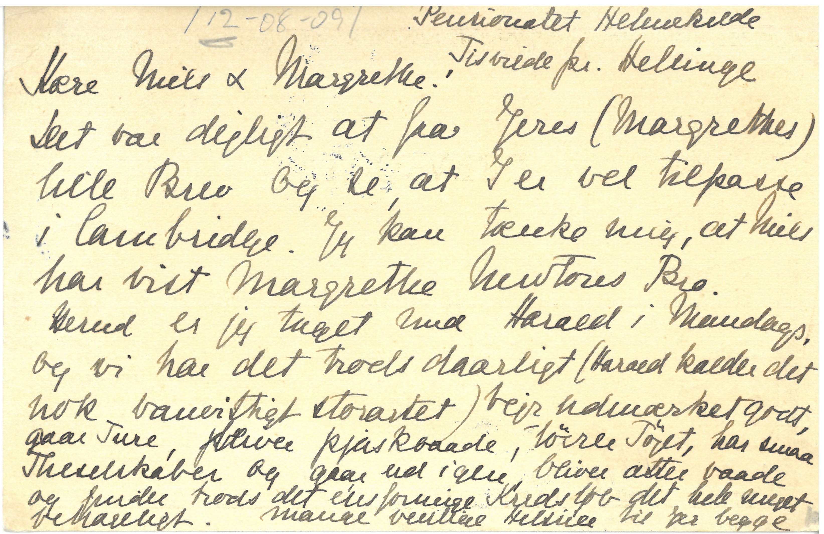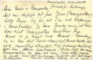 Det var dejligt at faa Jeres (Margrethes) lille Brev og se, at I er vel tilpasse i