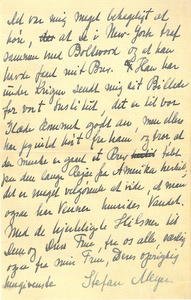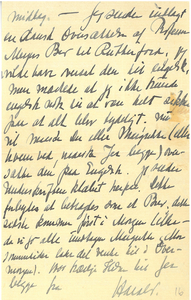 1000 Tak for Dine Breve (det lange Brev og Kortet) og for Telegrammet; vil Du ogsaa takke Margrethe mange Gange for hendes Brev, som jeg blev saa glad for. Jeg svarer i Morgen rigtig paa det hele; da jeg først i Eftermiddag taler med Fricke, som jeg har søgt forgæves nogle Gange, men traf i Gaar og aftalte at han skulde komme herop i Efter |middag. – Jeg sender indlagt en dansk Oversættelse af Professor Meyers Brev til Rutherford, jeg vilde have oversat den til engelsk, men mærkede at jeg ikke kunde engelsk nok til at være helt sikker paa at alt blev tydeligt; nu vil maaske Du eller Margrethe (eller hvem ved, maaske Jer begge) oversætte den paa Engelsk. Jeg sender Underskriften klæbet herpaa. Dette forbydes at betragtes som et Brev; dette sidste kommer først i Morgen (eller – da vi jo alle undtagen Margrethe og Mor sommetider lader det vente til i Overmorgen).