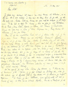 Jeg glæder mig saa meget til, naar vi nu snart kommer til København, at se Dig igen. Det er helt underligt at have været saa længe borte fra Jer alle, og slet ikke rigtig vide, hvordan I alle har, hvordan det gaar med Dit Arbejde og alt muligt andet. Vi har haft en dejlig Tid herovre og været saa glade for hele Alskolonien, lige fra Paula og Hanne Strelitz, Agnethe og Børnene til Courants og Besikovitch. Courant selv rejser med os hjem og bliver Kongressen over; Hardy kommer til København, jeg tror paa Lørdag.